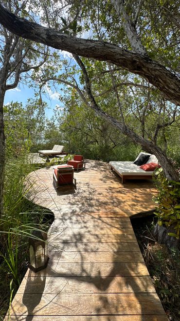 La privacidad, ideal para no salir, es muy relajante, único en tener playa para acezar a la laguna, te prestan kayak para ver el amanecer, una experiencia única, servicio de restaurante rápido y bueno, mobiliario cómodo para relajarse, atención del personal fue excelente en especial Luis, comodidad y cuidado de naturaleza al mismo tiempo, habitaciones amplias y cómodas con aire acondicionado el hotel es grande por lo que tienes que recorrer varias escaleras entre la habitación y la zona de la alberca, restaurant o laguna, No tiene tv Pero eso aumenta la experiencia de relajación, recomiendo llevar repelente y zapato para nadar eso en general en todo Bacalar